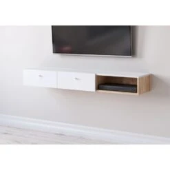VIVALDI Console Murale – TULIA – 140 Cm – ChĂȘne Artisan / Blanc Mat -…
