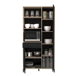 Buffet SEFRO – 4 Portes Et 4 Niches – Blanc LaquĂ© Et BĂ©ton