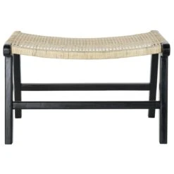 Banquette En Bois De Teck Noir Et Rotin Coloris Naturel – Longueur 65…