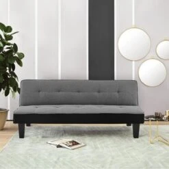CELIA Banquette Clic-Clac 3 Places Contemporain Capitonne – Tissu Gris…