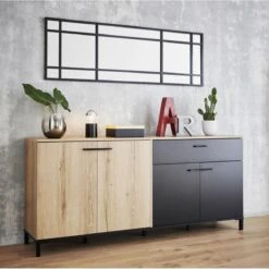 Time Buffet Haut 2 Portes/1 Tirorir TRUST Imitation ChĂȘne/noir