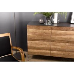 Buffet 2 Portes En Bois De Teck Recyclé Pieds En Métal Noir