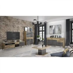 Buffet Haut KOLYMA – 3 Portes & 1 Niche – Coloris : ChĂȘne & Anthracit…