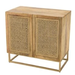 Buffet Marron 2 Portes Bois Manguier Et Cannage Pied Métal Doré ISA