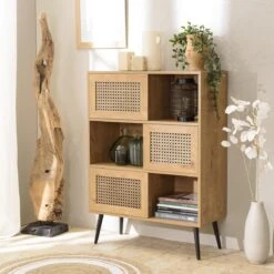 Buffet Marron 5 Portes Bois De Manguier Et Cannage Naturel ISA