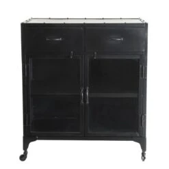Buffet LAONILE – 2 Portes Et 3 Tiroirs – Noyer Et Anthracite
