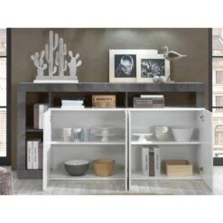 Buffet SEFRO – 4 Portes Et 4 Niches – Blanc LaquĂ© Et BĂ©ton