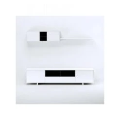 BELUS Meuble TV Mural Contemporain Noir Et Blanc Brillant – L 200 Cm