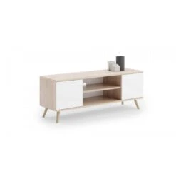 CSTORE – Symbiosys Meuble Tv Angle 2 Portes – DĂ©cor ChĂŞne Et Blanc -…