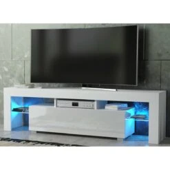 Meuble TV SPIDER à LED En Blanc MAT Avec Porte Blanc Laqué 160 Cm