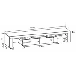 Meuble TV Salon Design 200cm 4 Compartiments 2 Portes Blanc Brillant B…