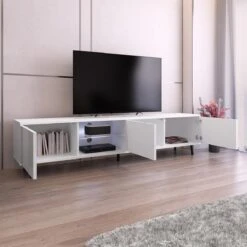 Meuble Tv – GALHAD – 175 Cm – Blanc Mat / Blanc Brillant – Ă©clairage…