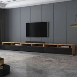 Meuble TV – REDNAW – 200 Cm – ChĂȘne Wotan / Noir Brillant – Avec LED