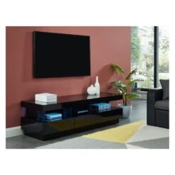 Meuble TV FABIO – MDF LaquĂ© Noir – LEDs – 3 Tiroirs & 3 Niches