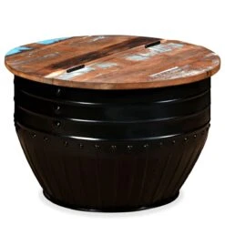 Table Basse Bois De RĂ©cupĂ©ration Massif Forme De Baril Noir – Noir