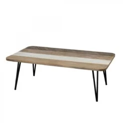 Table Basse Ronde 74 Cm En Teck Recyclé Naturel Et Métal Noir