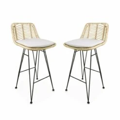 Points forts Alice’S Garden 2 tabourets de bar rotin naturel et mĂ©tal, coussins beiges l Alice’s Garden