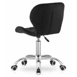 Le fauteuil pivotant est dotĂ© d’une assise et d’un dossier rembourrĂ©s de velours. La base de la chaise Ă 5 bras est chromĂ©e et est Ă©quipĂ©e de roues en caoutchouc. Grâce Ă l’utilisation d’un vĂ©rin pneumatique, il est possible de rĂ©gler sa hauteur de 42 Ă 53 cm. Ce modèle de chaise pivotante est idĂ©al pour les chambres d’enfants, les studios, les bureaux, les salons de beautĂ© et les points d’information., POINTS FORTS: Style moderne, Base Ă 5 bras sur roulettes en caoutchouc, Finition : assise et dossier en coloris noir, base chromĂ©e, Design Ă©lĂ©gant, Dossier confortable et ergonomique, CARACTÉRISTIQUES TECHNIQUES: Profondeur 56.5 cm, Largeur 46.5 cm, Hauteur 73.5 cm, MatĂ©riau : velours, Ă€ monter soi-mĂŞme, Photos des articles les plus fidèles possible, mais restant non contractuelles, les nuances de couleur et le rendu des matières prĂ©sentĂ©s Ă l’Ă©cran pouvant ĂŞtre diffĂ©rents de la rĂ©alitĂ©