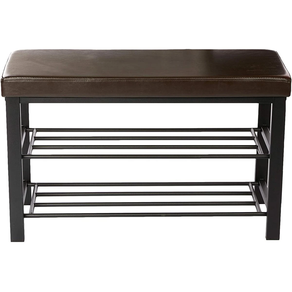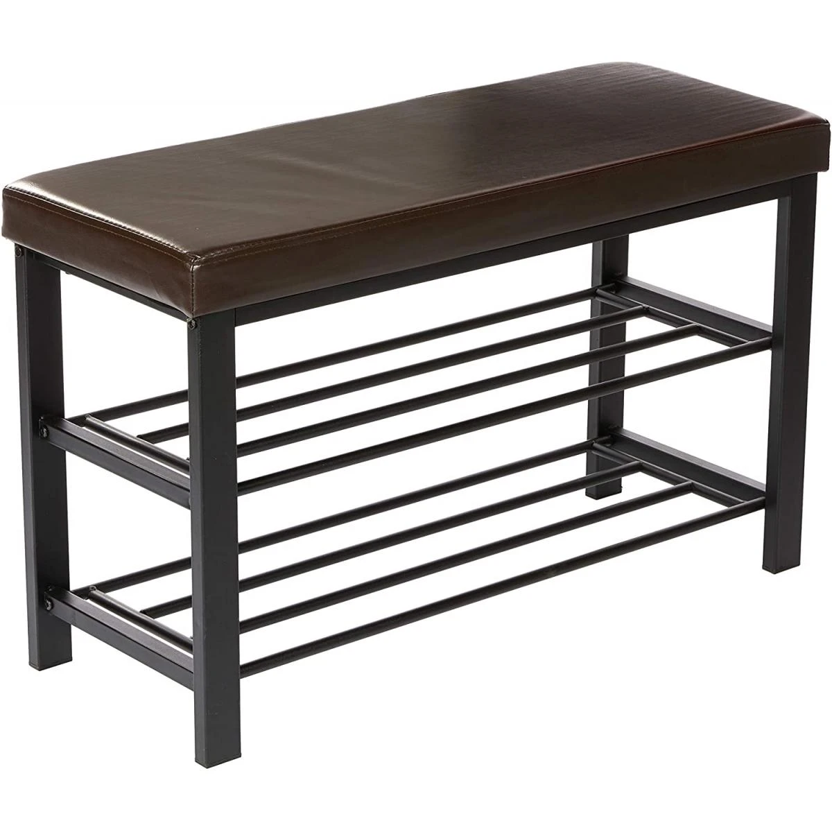 Points forts Helloshop26 Banc de rangement Ă chaussures meuble assise tabouret en similicuir 2 niveaux marron 13_0000360