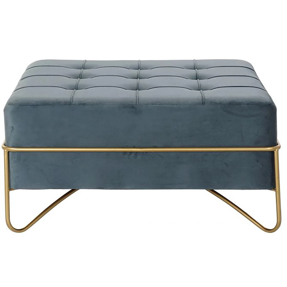 Points forts Pegane Banquette en métal et velours coloris bleu et pieds doré – Longueur 80 x Profondeur 80 x Hauteur 42 cm