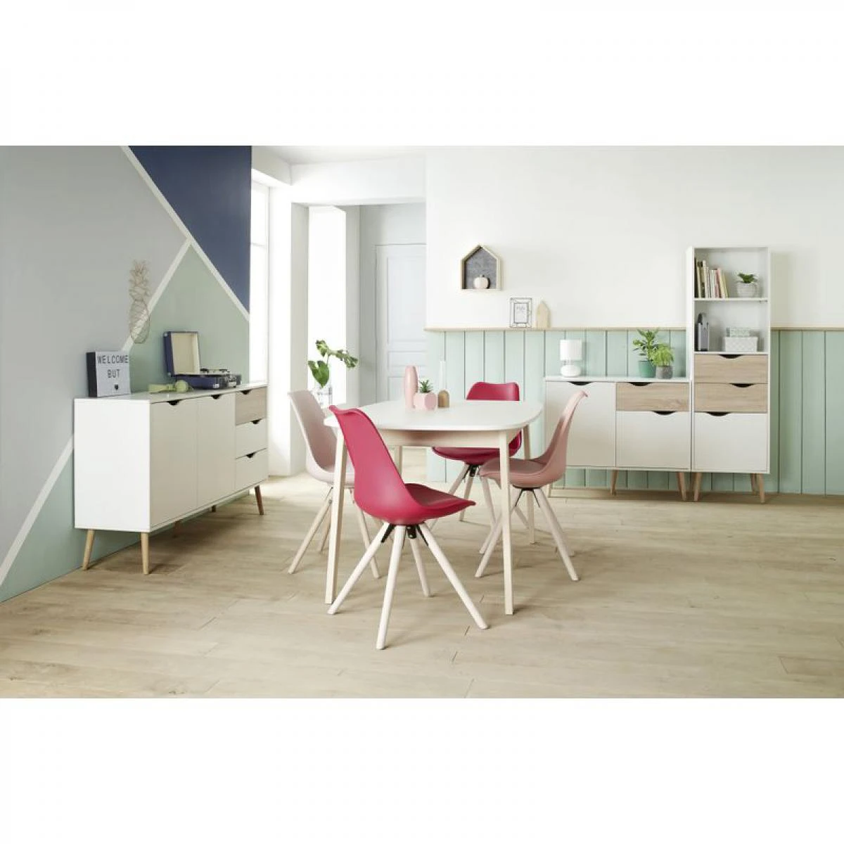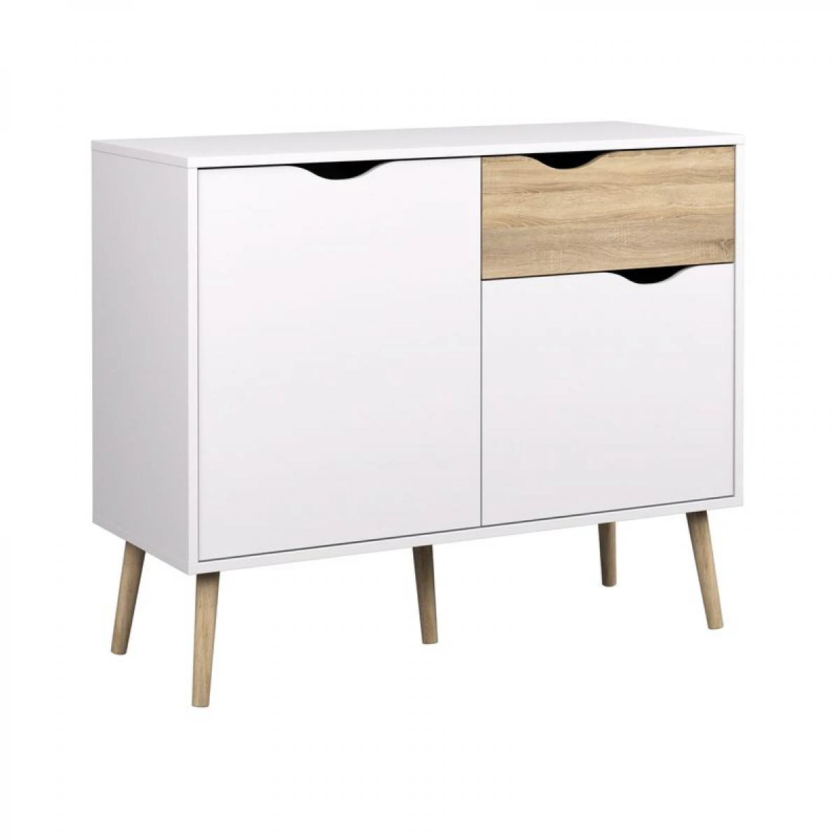 Buffet 2 portes 1 tiroir OSLO Blanc/chĂȘne – Un buffet pratiqueLe buffet OSLO est le modĂšle qu’il manquait Ă votre salle Ă manger. Ce rangement minimaliste dispose de deux niches refermĂ©es par des portes, dont une dotĂ©e d’une tablette intĂ©rieure, et d’un grand tiroir. Tous ces Ă©lĂ©ments s’ouvrent facilement grĂące Ă leurs poignĂ©es en creux. Robuste, ce meuble fabriquĂ© en Europe est en panneaux de particules revĂȘtus de papier dĂ©cor, un matĂ©riau pratique Ă nettoyer Ă l’Ă©ponge ou avec un chiffon humide. Ce buffet de dimensions L. 98,6 x H. 81,7 x P. 39,05 cm est livrĂ© en un seul colis d’un poids de 26 kg.Typique du style scandinaveMontĂ© sur des pieds obliques en chĂȘne massif, ce buffet blanc et chĂȘne est directement inspirĂ© du design scandinave. Vous apprĂ©cierez sa finition bicolore qui permet de l’assortir aussi bien aux meubles en bois clair qu’aux meubles blancs. IdĂ©e dĂ©co : vous pouvez relier deux buffets ensemble pour crĂ©er une enfilade de salle Ă manger. – Structure :Panneaux de particules. . Pieds :ChĂȘne massif Ă35/25 X 200 mm. . Porte :Panneaux de particules recouverts de papier dĂ©cor blanc. . Portes :X2 dĂ©cor blanc. . Facade de tiroir :Panneaux de particules recouverts de papier dĂ©cor blanc et chĂȘne structurĂ©. . Facades de tiroirs :X1 dĂ©cor chĂȘne structurĂ©. . Etageres :X2. . Poignees :Prise de main. . Teinte :Blanc et chĂȘne. . Finition :Papier dĂ©cor blanc et chĂȘne structurĂ©. Fond de tiroir gris argent . Dimensions en cm :L. 98,6 – H. 81,7 – P. 39,05 cm. . A monter soi-meme. . Dispo pcs detachees donnee fournisseur :. . Garantie :2 ans , PiĂšces . – TrĂšs tendance avec son style rĂ©tro le sĂ©jour OSLO vous sĂ©duira par sa ligne pure et son piĂ©tement en bois massif. Avec ses Ă©lĂ©ments fonctionnels il sera idĂ©al pour les petits espaces..