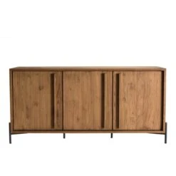 Misez sur ce Buffet 3 portes en bois de teck recyclé pieds en métal noir pour embellir votre salle à manger. Il a un design alliant le style rustique de sa structure en bois et l’aspect industriel de ses pieds en métal pour apporter une touche d’authenticité à votre décoration d’intérieur. Très pratique, il dispose de rangement pratique au quotidien.