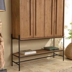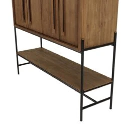 Avec sa structure en bois massif, ce Buffet 4 portes 1 niche en bois de teck recyclé apporte une touche rustique naturelle à votre intérieur. Il possède six espaces de rangement pratiques pour mettre vos vaisselles et vos verres. Ses pieds robustes en métal lui donnent un côté industriel chic tout en vous permettant d’embellir votre intérieur avec divers objets décoratifs grâce à son plateau en bois.