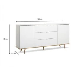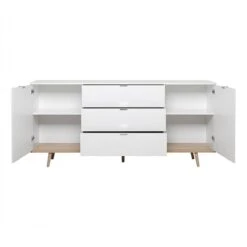 Le design minimaliste est Ă©galement complĂ©tĂ© par des lignes Ă©purĂ©es et une finition blanche qui modernisent l’ensemble et font du buffet Vide un mobilier incontournable du style nordique, tout en offrant un maximum de fonctionnalitĂ© et une agrĂ©able touche de raffinement.