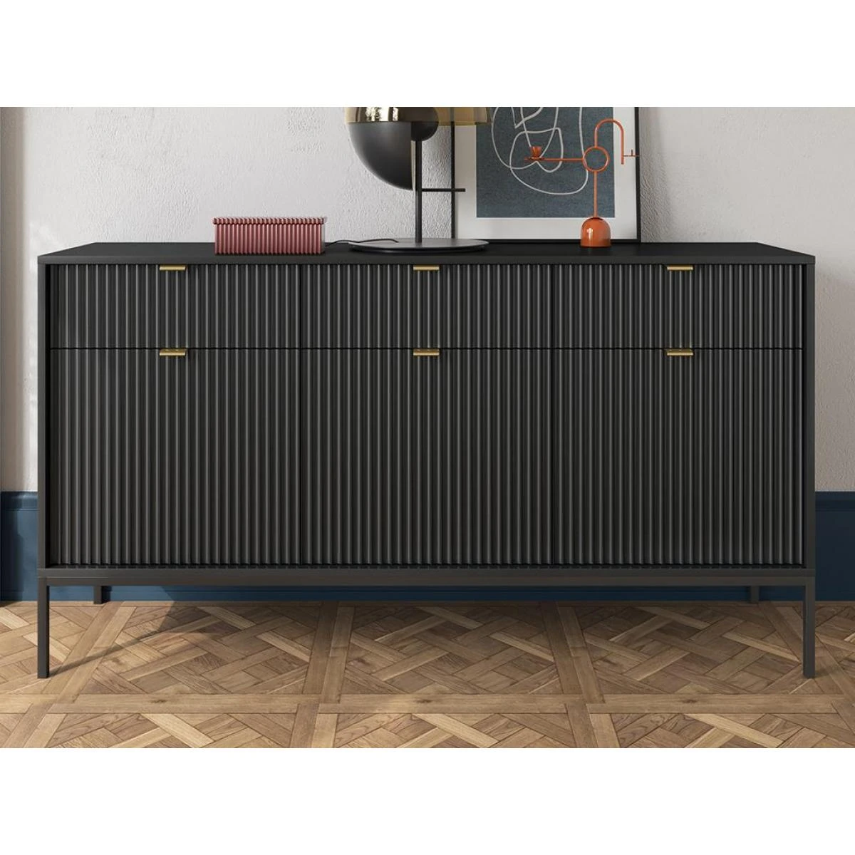 Points forts Vente-Unique Buffet avec 3 portes et 3 tiroirs – Noir – LIOUBA