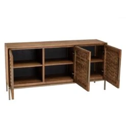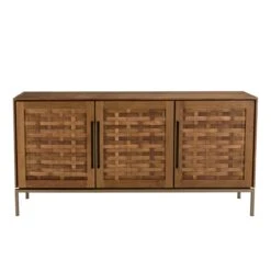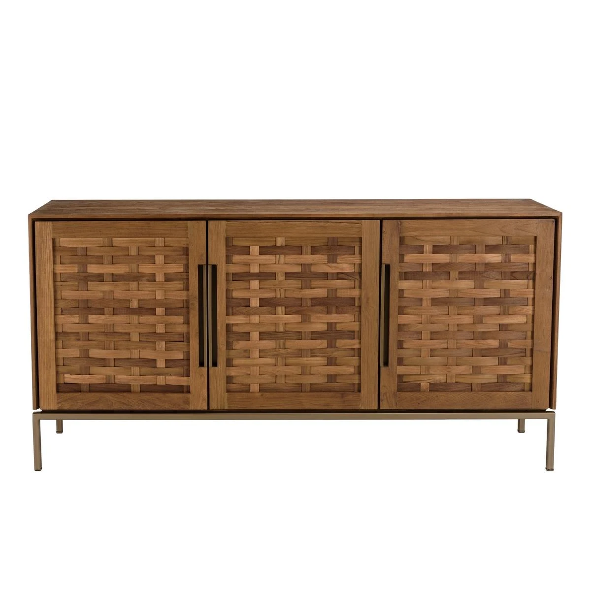 Craquez pour le design ethnique original de ce Buffet en bois de teck recyclé 3 portes. Ses trois portes possèdent une façade en lame de teck qui donne à ce meuble une touche d’exotisme et de raffinement. Ses pieds en métal lui assurent une bonne stabilité et un look légèrement industriel pour se fondre facilement dans tous les intérieurs.