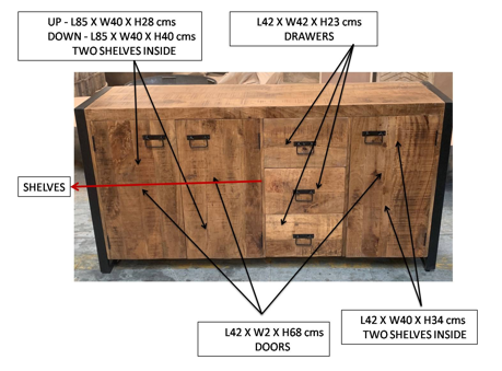 Points forts Vente-Unique Buffet HARLEM – 3 portes et 3 tiroirs – Bois de Manguier & MĂ©tal