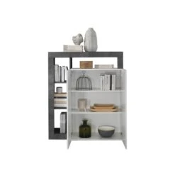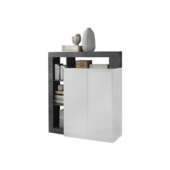 Points forts Vente-Unique Buffet haut SEFRO – 2 portes et 4 niches – Blanc laqué et béton
