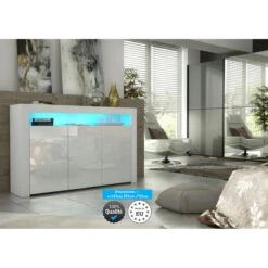 Buffet JIVE 145 cm blanc mat avec portes blanc laquées avec LEDS