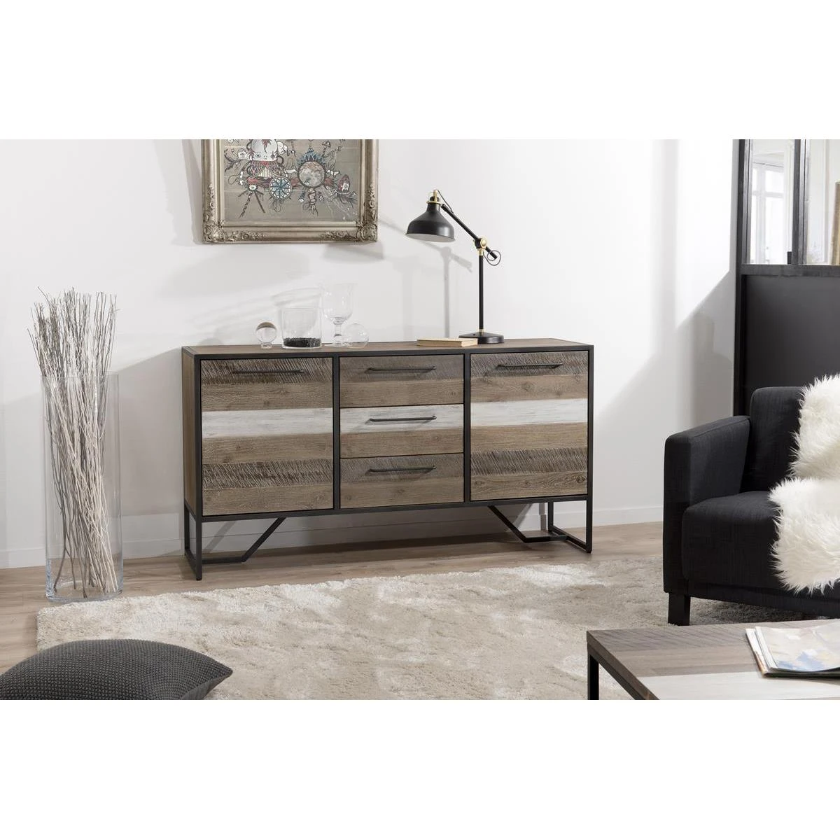 Buffet 2 portes 3 tiroirs style industriel livré monté