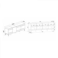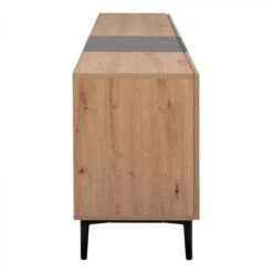 Buffet NOLA Imitation chĂȘne et noir – Un meuble dotĂ© de nombreux rangementsLe buffet NOLA s’intĂšgre rapidement dans votre entrĂ©e, votre sĂ©jour ou votre salon. PossĂ©dant quatre compartiments, chacun divisĂ© par une Ă©tagĂšre pour plus d’espace de rangement, ce buffet vous permet de stocker de la vaisselle comme des documents ou d’autres fournitures. GrĂące Ă ses quatre portes, vous pouvez ranger vos affaires Ă l’abri des regards si vous le souhaitez. Simple Ă monter, le buffet L. 200 x l. 42 x H. 65 cm peut Ă©galement vous servir pour poser des objets dĂ©coratifs ou des plantes, par exemple. Vous pouvez aussi installer un lampadaire sur son plateau pour apporter plus d’Ă©clairage Ă votre piĂšce.Un style vintage et Ă©lĂ©gantMontĂ© sur sept pieds discrets, ce buffet imitation chĂȘne et noir se distingue grĂące au contraste de ses motifs mimant le fini du bois et de son coloris tendance et sobre. Ses trois compartiments effet bois sont rehaussĂ©s d’un compartiment peint en noir pour apporter une touche vintage et raffinĂ©e Ă votre intĂ©rieur. – Structure :En panneaux de particules. . Pieds :Hauteur des pieds : 14,8 cm. . Portes :4 portes, DerriĂšre chacune des deux portes de gauche, 2 espaces de rangement de dimensions L. 46,4 x l. 33,4 x H. 22,3 cm. DerriĂšre chacune des deux portes de droite, 2 espaces de rangement de dimensions L. 47,3 x l. 33,4 x H. 22,3 cm. . Facades de portes :3 façades imitation chĂȘne et une façade noire. . Finition :Imitation chĂȘne et noir. . Dimensions en cm :L. 200 x l. 42 x H. 65 cm. . Dispo pcs detachees donnee fournisseur :0 an. . Garantie :2 ans, piĂšces. . A monter soi-memeOui. . – Donnez Ă votre intĂ©rieur un style vintage Ă©lĂ©gant avec la gamme NOLA. Pratique, le buffet dispose de nombreux rangements derriĂšre ses 4 portes !. On aime : l’alliance tendance et moderne du chĂȘne et du noir.