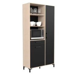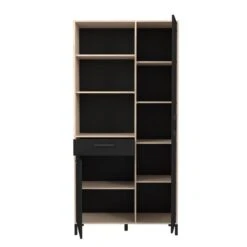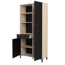 Tiroir :1. . Façade :en panneaux de particules mĂ©laminĂ© Ă©p. 15 mm. dĂ©cor noir mat 2 faces. Chants dĂ©cor noir. . Finition :ChĂȘne Jackson et noir. . Garantie :2 ans. . Coulisses :Ă billes. . PoignĂ©es :mĂ©talliques noir. . Structure :en panneaux de particules mĂ©laminĂ© Ă©p. 15 mm. dĂ©cor chĂȘne Jackson 2 faces. Chants dĂ©cor chĂȘne Jackson. . A monter soi-mĂȘme. . Dimensions en cm :L. 100 – H. 204,6 – P.40. . Façade porte (s) :1. . Dispo pcs dĂ©tachĂ©es donnĂ©e fournisseur :2 ans. .