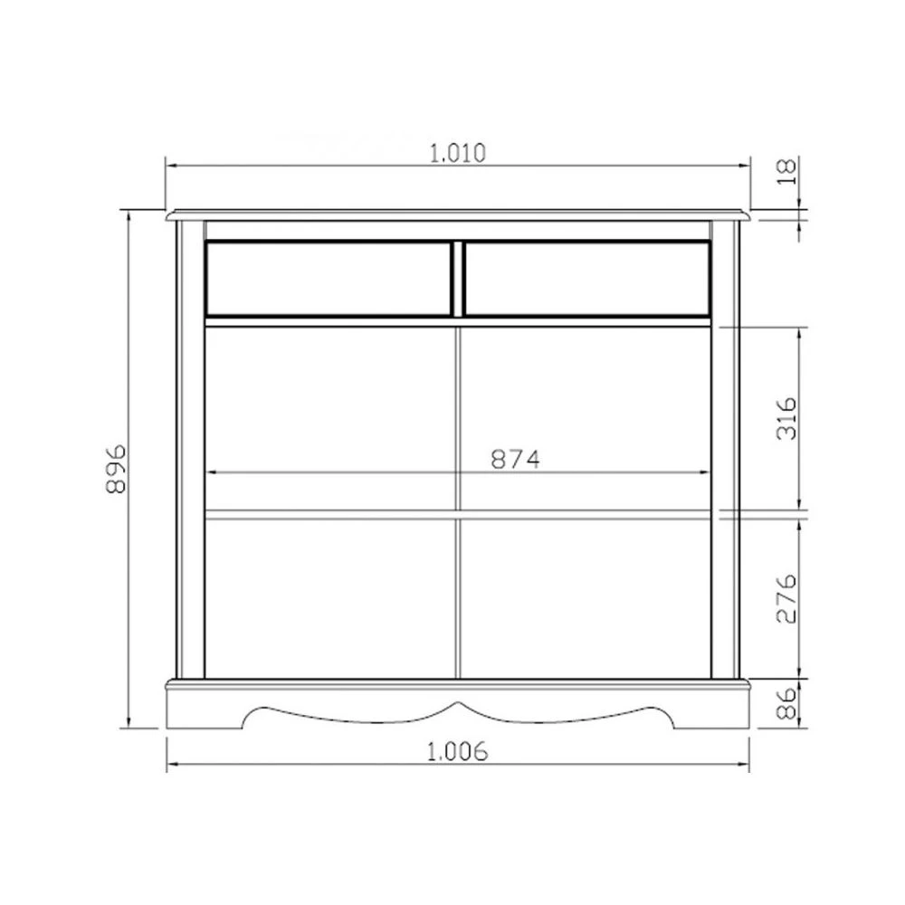 Buffet Vaisselier Blanc, 4 portes 2 tiroirs de Style Anglais. Largeur 101 cm Hauteur 186 cm Profondeur 42 cm. Buffet bas : – Tiroirs montĂ©s sur glissiĂšres mĂ©talliques Ă galet. – 1 grande tablette rĂ©glable en hauteur Les tiroirs sont livrĂ©s avec deux sortes de poignĂ©es (Ă Ă©quiper selon votre prĂ©fĂ©rence) : – PoignĂ©es coquille mĂ©tal – Boutons bois blancs. Vaisselier haut : – 2 portes vitrĂ©es. – 2 grandes tablettes rĂ©glables en hauteur CaractĂ©ristiques techniques : – Corniche, socle et montants en pin massif. Structure MDF (panneaux de fibres de bois) teintĂ© blanc, protection vernis nitrocellulosique. – Meuble livrĂ© dĂ©montĂ© (montage facile) – Pour faciliter le montage, les socles, les charniĂšres et les coulisses mĂ©talliques Ă galets des tiroirs sont livrĂ©s prĂ©-montĂ©s. – Garantie 2 ans. – Bois issus de forĂȘts gĂ©rĂ©es durablement. Livraison gratuite, sous une semaine, du lundi au vendredi, au rez-de-chaussĂ©e, sur rendez-vous.