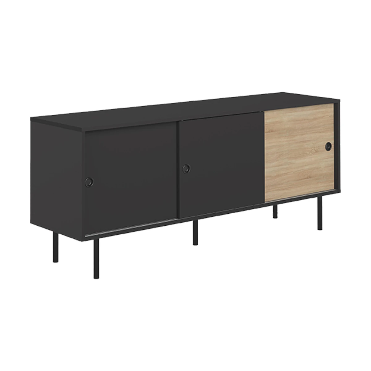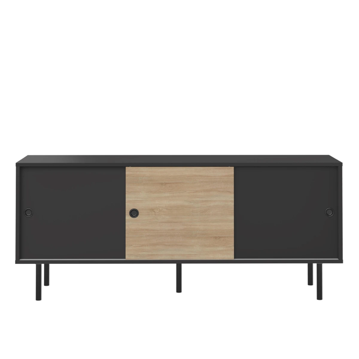 Le buffet ZIP trouvera naturellement sa place dans votre salon, votre salle à manger ou votre bureau. Ses grandes niches fermées par les portes coulissantes sont spacieuses et idéales pour stocker vos objets, vos livres ou votre vaisselle. Ses pieds en métal noir et sa forme simple vous permet un montage facile du meuble. Les 3 portes coulissantes sont interchangeables sur les 2 rails du meuble. Il est cependant indispensable de mettre 2 portes sur un rail et la derniÚre sur le deuxiÚme pour pouvoir accéder à tous les rangements.