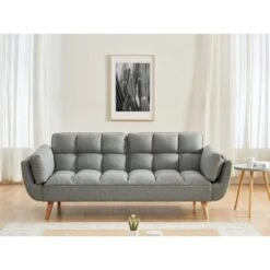 Points forts Vente-Unique Canapé 3 places convertible clic-clac en tissu LOELINE – Gris chiné