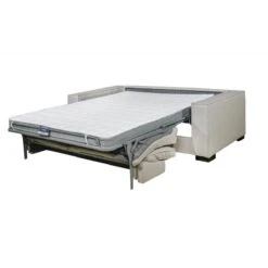 Points forts Dunlopillo CanapĂ© 3 places convertible express en tissu beige – Couchage 140 cm – Matelas DUNLOPILLO 14 cm – DOLORES