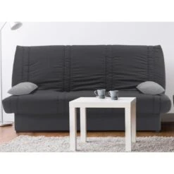 Points forts Vente-Unique CanapĂ© convertible clic-clac 100% coton avec coffre de rangement FARWEST II – Gris foncĂ© coussins gris clair