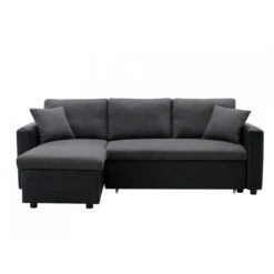 Points forts Vente-Unique Canapé d’angle convertible et réversible en tissu et simili GAZUR – Anthracite et noir