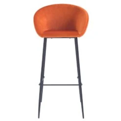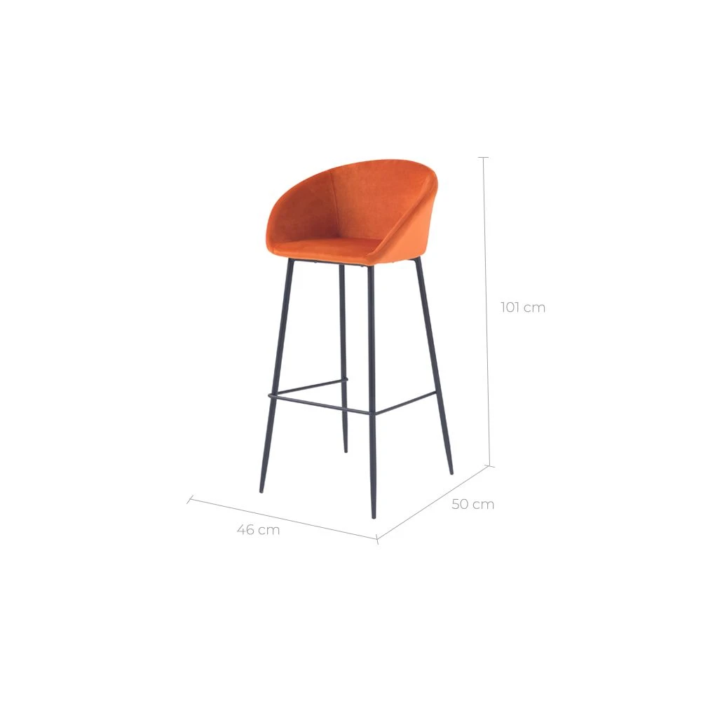 Chaise de bar en velours orange corail H75cm (lot de 2) – Marquise –
