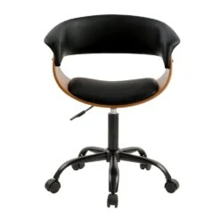 Chaise de bureau noire rembourrĂ©e et pivotante en PU avec hauteur d’assise rĂ©glable 44/56 cm – Basile –