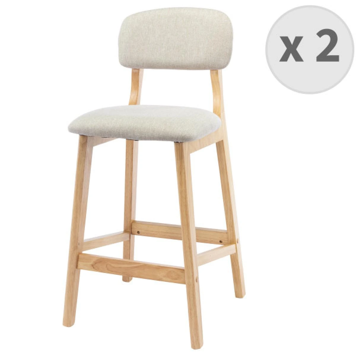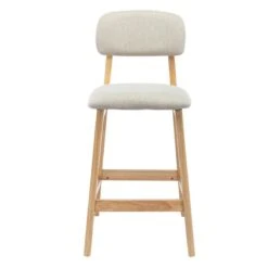 Points forts Moloo CLIFF – Chaise de bar en tissu coloris Lin et bois massif(x2)