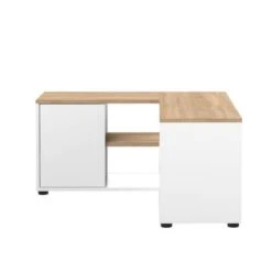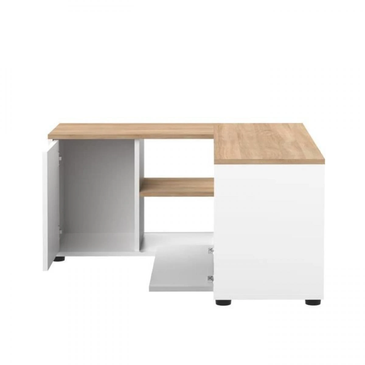 meuble tv angle 2 portes – décor chêne et blanc – l 90xp 90xh 45 cm.