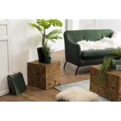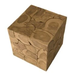 Le Cube 40x40cm bois Teck nature SUVA est la table d’appoint idĂ©ale. Ce meuble 100% bois est une vĂ©ritable oeuvre d’art ! Les morceaux de Teck qui le composent dĂ©voilent des noeuds et des volumes bruts et naturels.
