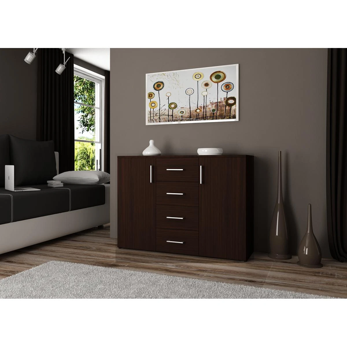 Points forts Hucoco ELTON | Commode Buffet moderne salon sĂ©jour chambre | 110x80x35cm 4 tiroirs 2 portes | Meuble de rangement Enfilade – Wenge