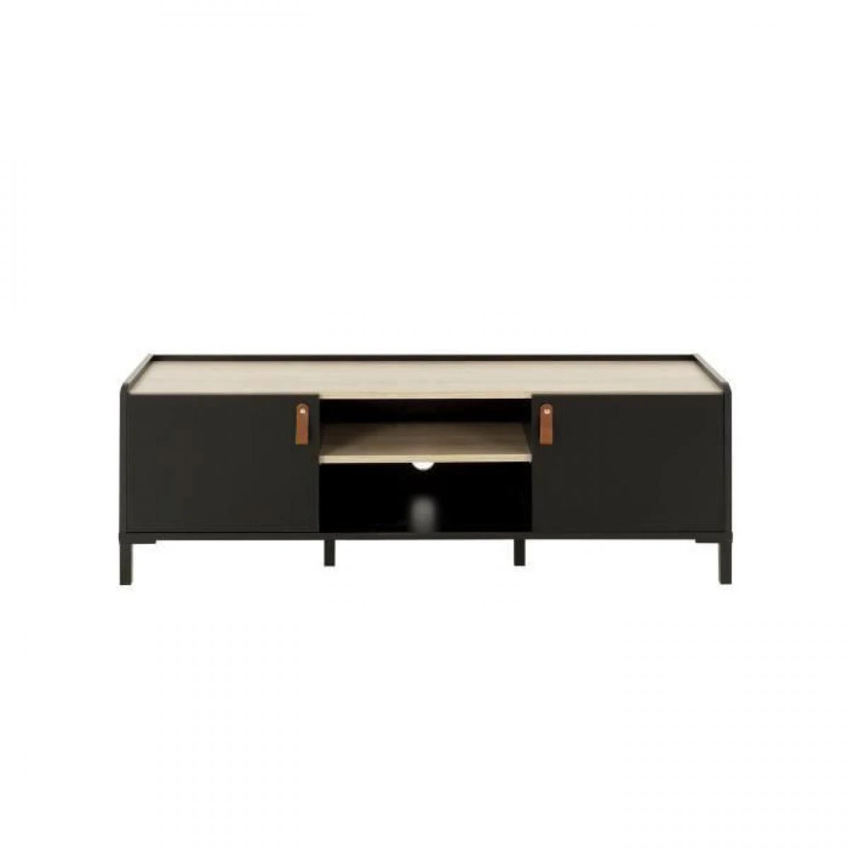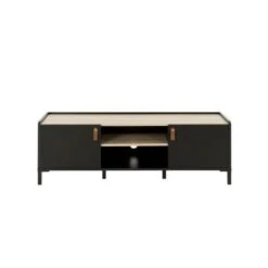 AMSTERDAM Meuble TV – Style industriel – Décor chêne noir – L 136 x P 40 x H 44 cm