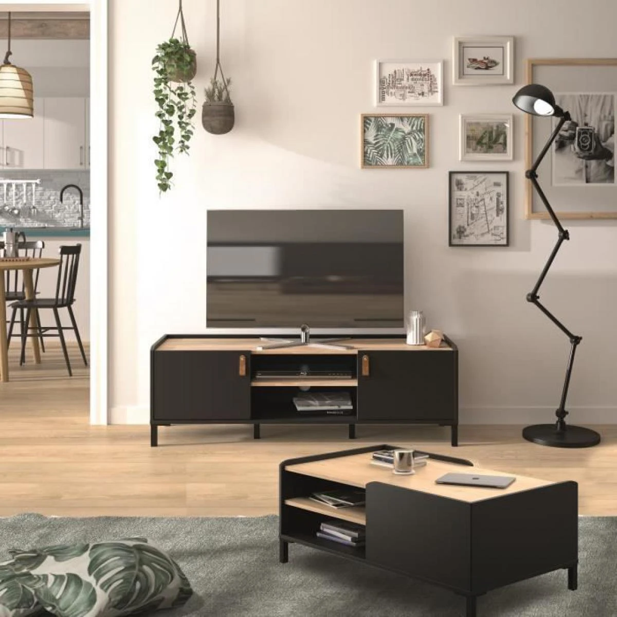 Points forts Gami GAMI Meuble TV – Style Industriel – Made in France – Décor chêne noir – L 136 x P 40 x H 44 cm – AMSTERDAM